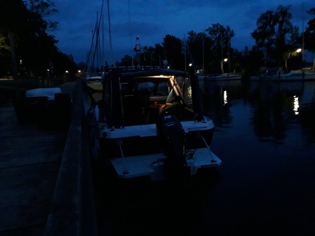 Problemet med kräftfisket är låsningen i tid. Uppe vid Vättern är det alltid mycket och varierande väder. Så även denna gång. Vi rampade i Motala på fredagen och åkte över till Vadstena gästhamn. I Vadstena finns ingen vettig sjösättningsramp vilket är lite märkligt. Vädret på fredagen var kanon och iläggning av burarna gick bra. Vi har hittat två stengrund som brukar leverera inte långt utanför hamnen. Under lördagen kom vädret med regn och hårda nordostliga vindar. Vi steg upp tidigt för att utnyttja en lucka i blåsandet för att vittja burarna. Nu till det tråkiga. Under en av Lördagens utflykter upptäckte jag ett dieselläckage från bilen. Det droppade tillräckligt mycket för att jag förstod att det behövdes en mekaniker. Inte helt lätt kl 18 en lördagskväll i Vadstena. Men det finns fortfarande vänliga och serviceinriktade människor skulle det visa sig. Vi får tag i Bosse bildoktorn från Motala som kör ner till oss i Vadstena för att titta på bilen. Det visar sig vara ett bränslerör som håller på att rosta sönder. Vi får låna Bosses bil medan han kör till verkstan och kapar bränsleröret och sätter dit en ny bränsle slang. Fantastiskt!